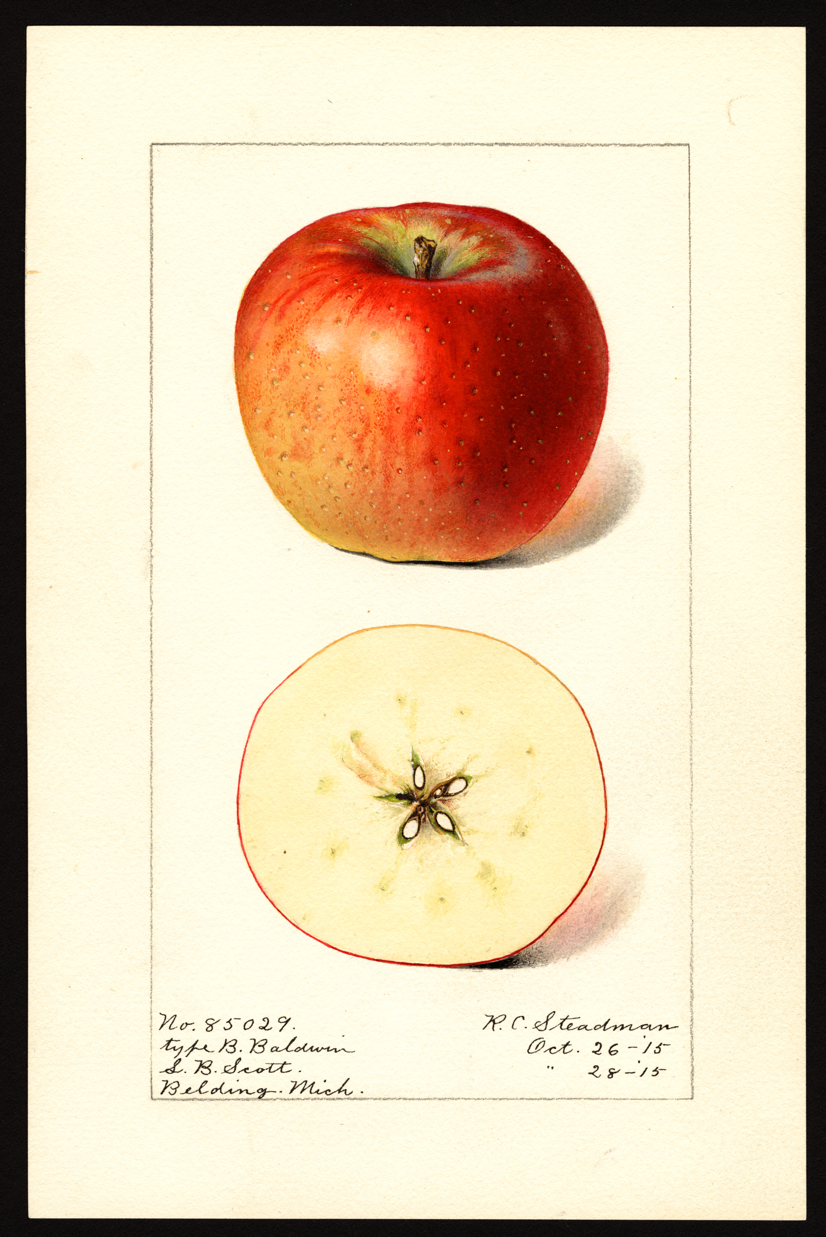 current21:21, 31 January 2026Thumbnail for version as of 21:21, 31 January 20262,670 × 4,000 (8.05 MB)Bot (talk | contribs)== Summary == USDA Pomological Watercolor of Baldwin apple. * '''Artist:''' Steadman, Royal Charles b. 1875 creator artist USDA * '''Source:''' U.S. Department of Agriculture Pomological Watercolor Collection. Rare and Special Collections, National Agricultural Library, Beltsville, MD 20705 * '''Identifier:''' POM00001356 * '''License:''' Public Domain Category:USDA Pomological Watercolors Category:Apple variety images