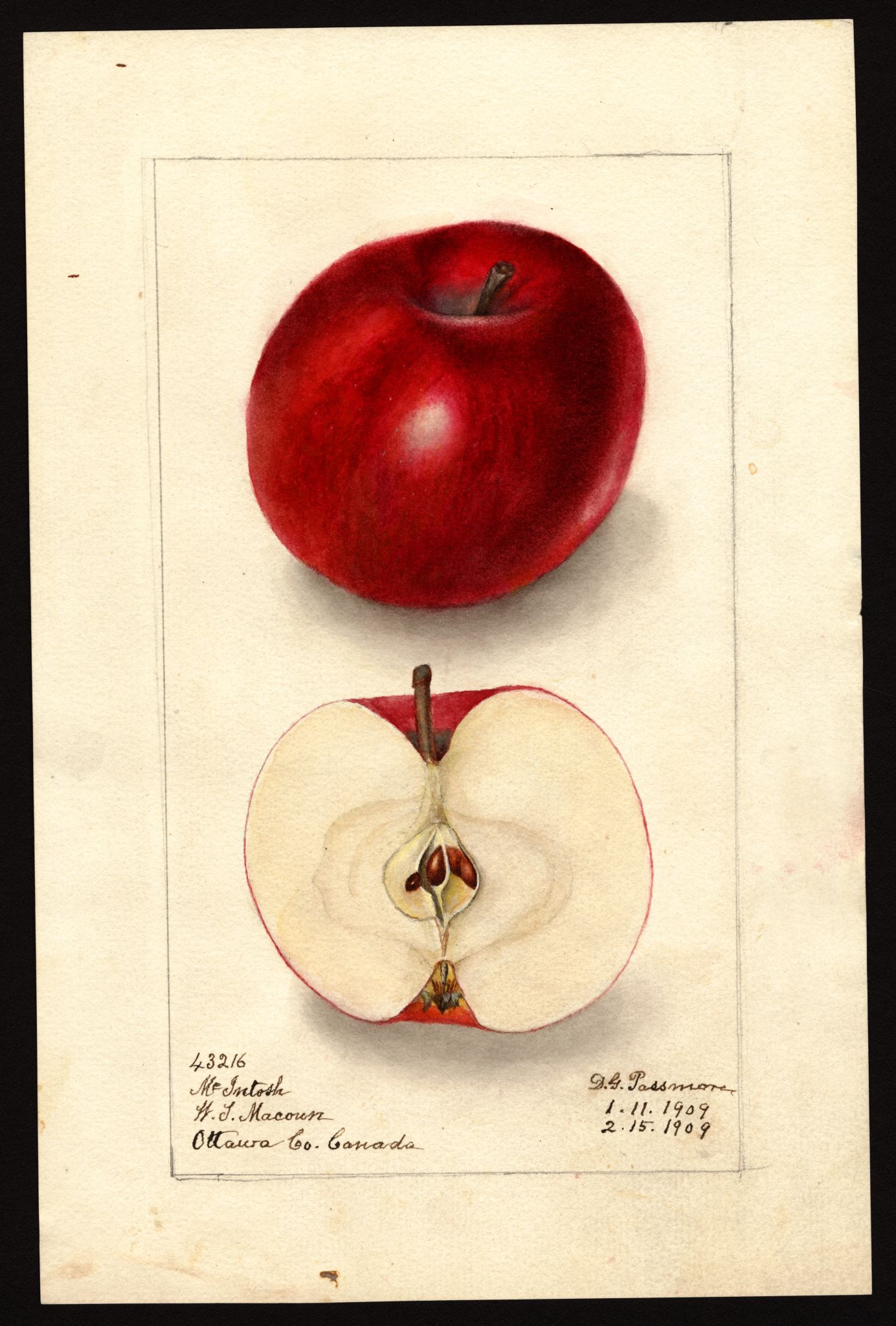 | current | 21:43, 31 January 2026 | 2,703 × 4,000 (7.65 MB) | Bot (talk | contribs) | == Summary == USDA Pomological Watercolor of McIntosh apple. * '''Artist:''' Passmore, Deborah Griscom 1840-1911 creator artist USDA * '''Source:''' U.S. Department of Agriculture Pomological Watercolor Collection. Rare and Special Collections, National Agricultural Library, Beltsville, MD 20705 * '''Identifier:''' POM00002841 * '''License:''' Public Domain Category:USDA Pomological Watercolors Category:Apple variety images |