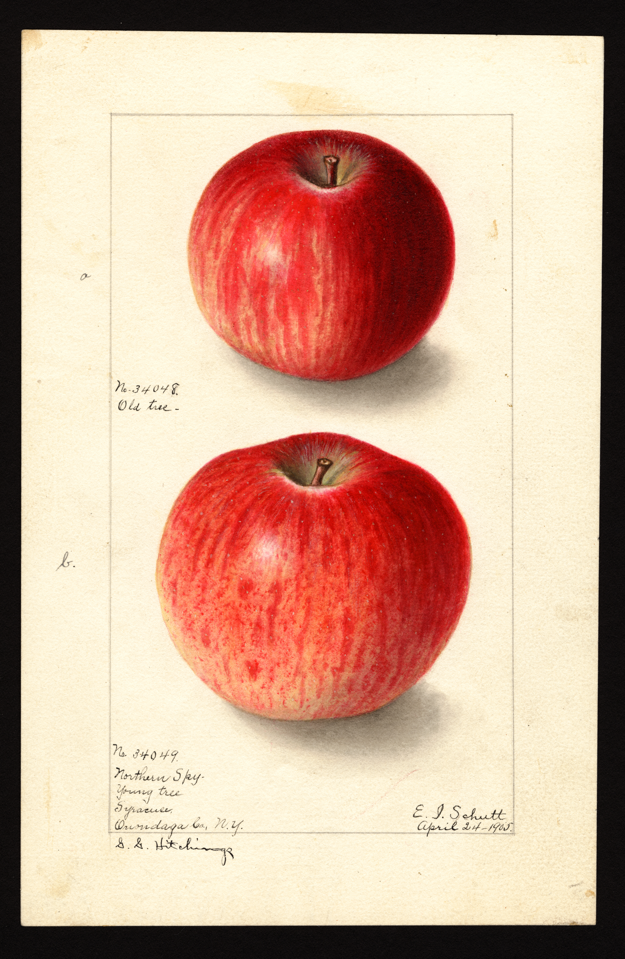 current20:54, 31 January 2026Thumbnail for version as of 20:54, 31 January 20262,606 × 4,000 (8.24 MB)Bot (talk | contribs)== Summary == USDA Pomological Watercolor of Northern Spy apple. * '''Artist:''' Schutt, Ellen Isham 1873-1955 creator artist USDA * '''Source:''' U.S. Department of Agriculture Pomological Watercolor Collection. Rare and Special Collections, National Agricultural Library, Beltsville, MD 20705 * '''Identifier:''' POM00000305 * '''License:''' Public Domain Category:USDA Pomological Watercolors Category:Apple variety images