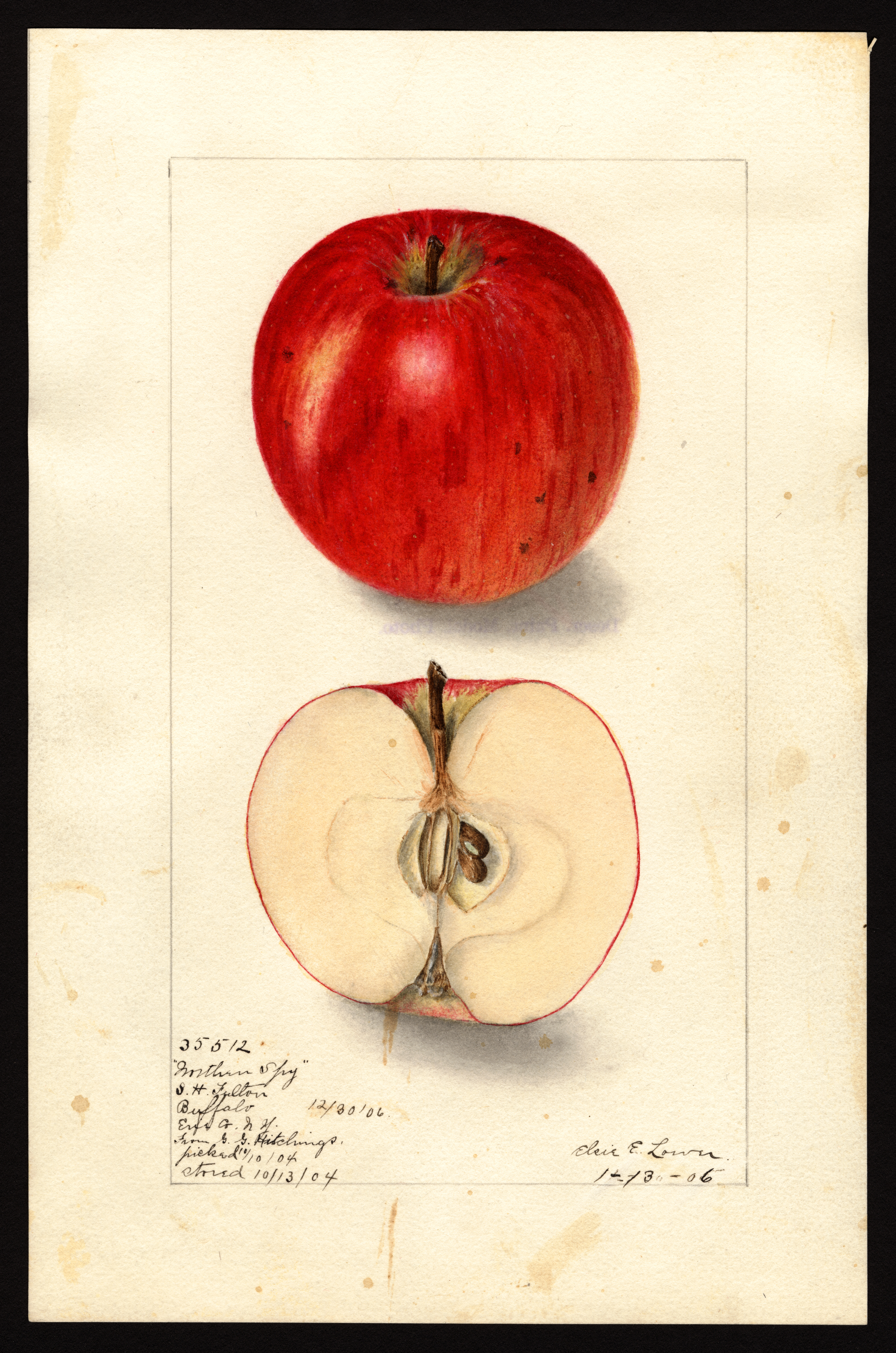 current20:55, 31 January 2026Thumbnail for version as of 20:55, 31 January 20262,649 × 4,000 (7.75 MB)Bot (talk | contribs)== Summary == USDA Pomological Watercolor of Northern Spy apple. * '''Artist:''' Lower, Elsie E. b. 1882 creator artist USDA * '''Source:''' U.S. Department of Agriculture Pomological Watercolor Collection. Rare and Special Collections, National Agricultural Library, Beltsville, MD 20705 * '''Identifier:''' POM00000593 * '''License:''' Public Domain Category:USDA Pomological Watercolors Category:Apple variety images