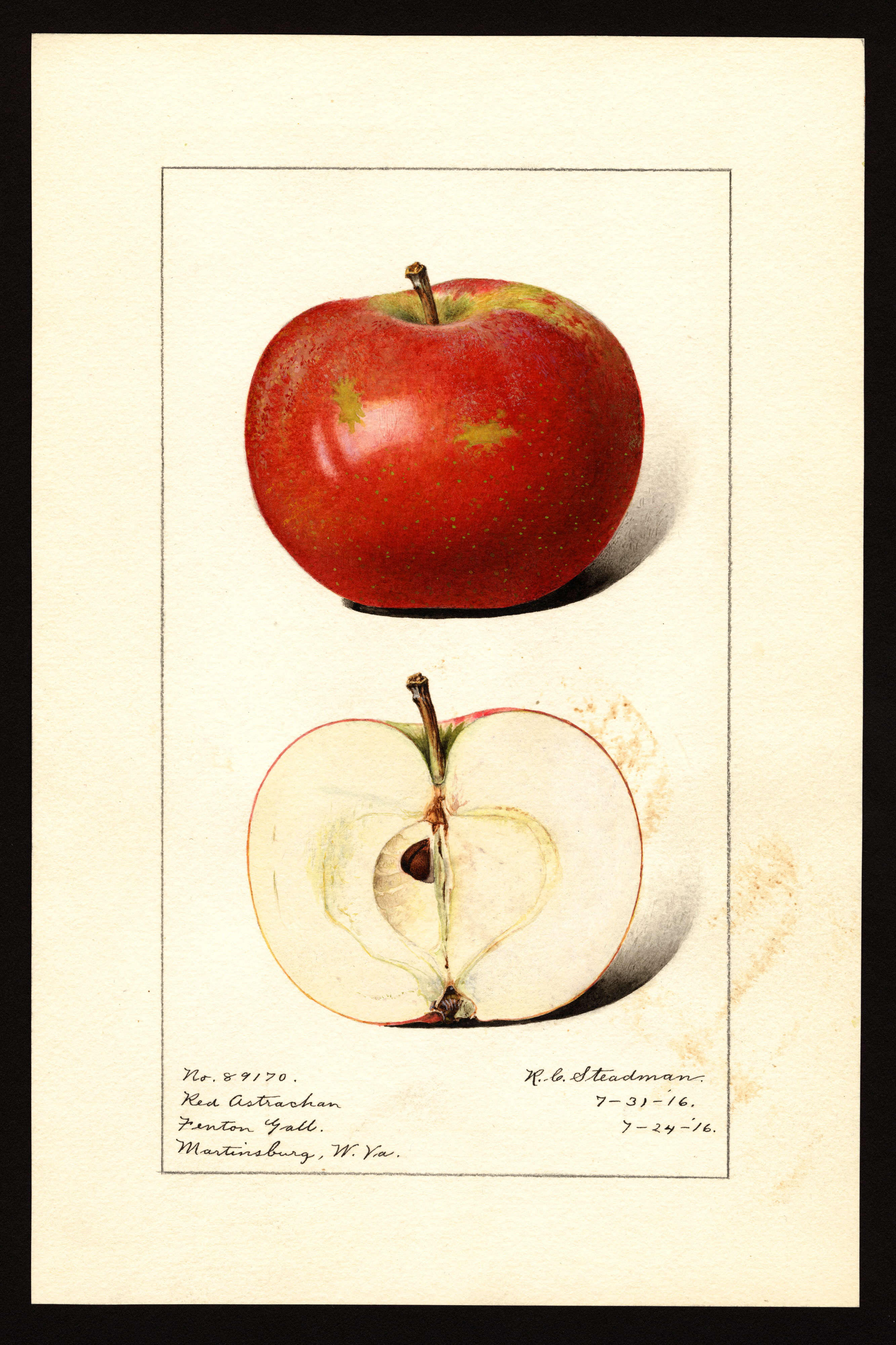 current20:59, 31 January 2026Thumbnail for version as of 20:59, 31 January 20262,666 × 4,000 (7.67 MB)Bot (talk | contribs)== Summary == USDA Pomological Watercolor of Red Astrachan apple. * '''Artist:''' Steadman, Royal Charles b. 1875 creator artist USDA * '''Source:''' U.S. Department of Agriculture Pomological Watercolor Collection. Rare and Special Collections, National Agricultural Library, Beltsville, MD 20705 * '''Identifier:''' POM00003024 * '''License:''' Public Domain Category:USDA Pomological Watercolors Category:Apple variety images