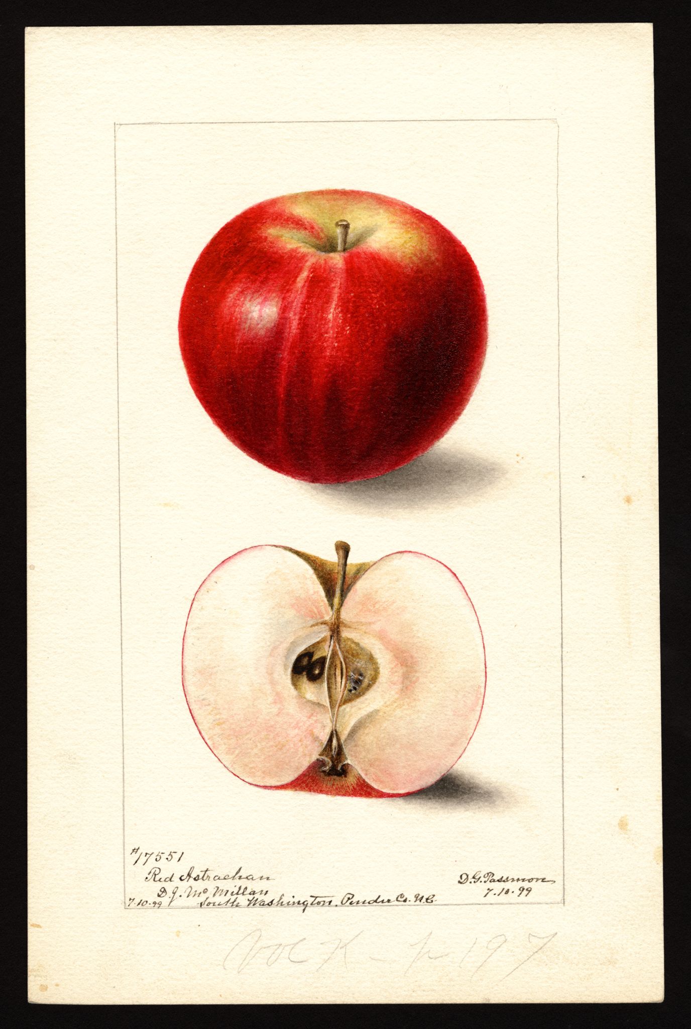 current21:00, 31 January 2026Thumbnail for version as of 21:00, 31 January 20262,688 × 4,000 (8.45 MB)Bot (talk | contribs)== Summary == USDA Pomological Watercolor of Red Astrachan apple. * '''Artist:''' Passmore, Deborah Griscom 1840-1911 creator artist USDA * '''Source:''' U.S. Department of Agriculture Pomological Watercolor Collection. Rare and Special Collections, National Agricultural Library, Beltsville, MD 20705 * '''Identifier:''' POM00003027 * '''License:''' Public Domain Category:USDA Pomological Watercolors Category:Apple variety images