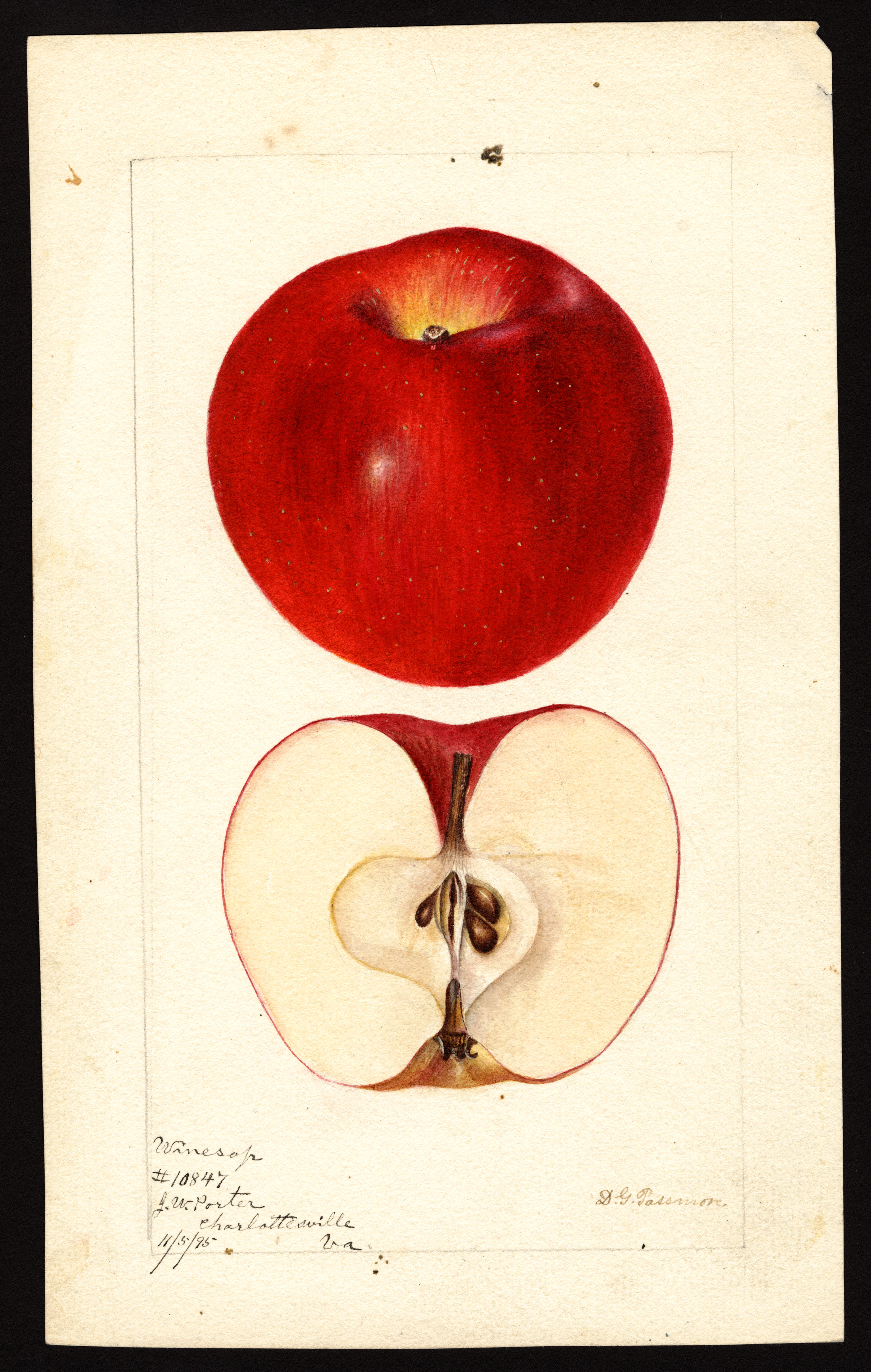 current21:11, 31 January 2026Thumbnail for version as of 21:11, 31 January 20262,539 × 4,000 (8.35 MB)Bot (talk | contribs)== Summary == USDA Pomological Watercolor of Winesap apple. * '''Artist:''' Passmore, Deborah Griscom 1840-1911 creator artist USDA * '''Source:''' U.S. Department of Agriculture Pomological Watercolor Collection. Rare and Special Collections, National Agricultural Library, Beltsville, MD 20705 * '''Identifier:''' POM00001024 * '''License:''' Public Domain Category:USDA Pomological Watercolors Category:Apple variety images