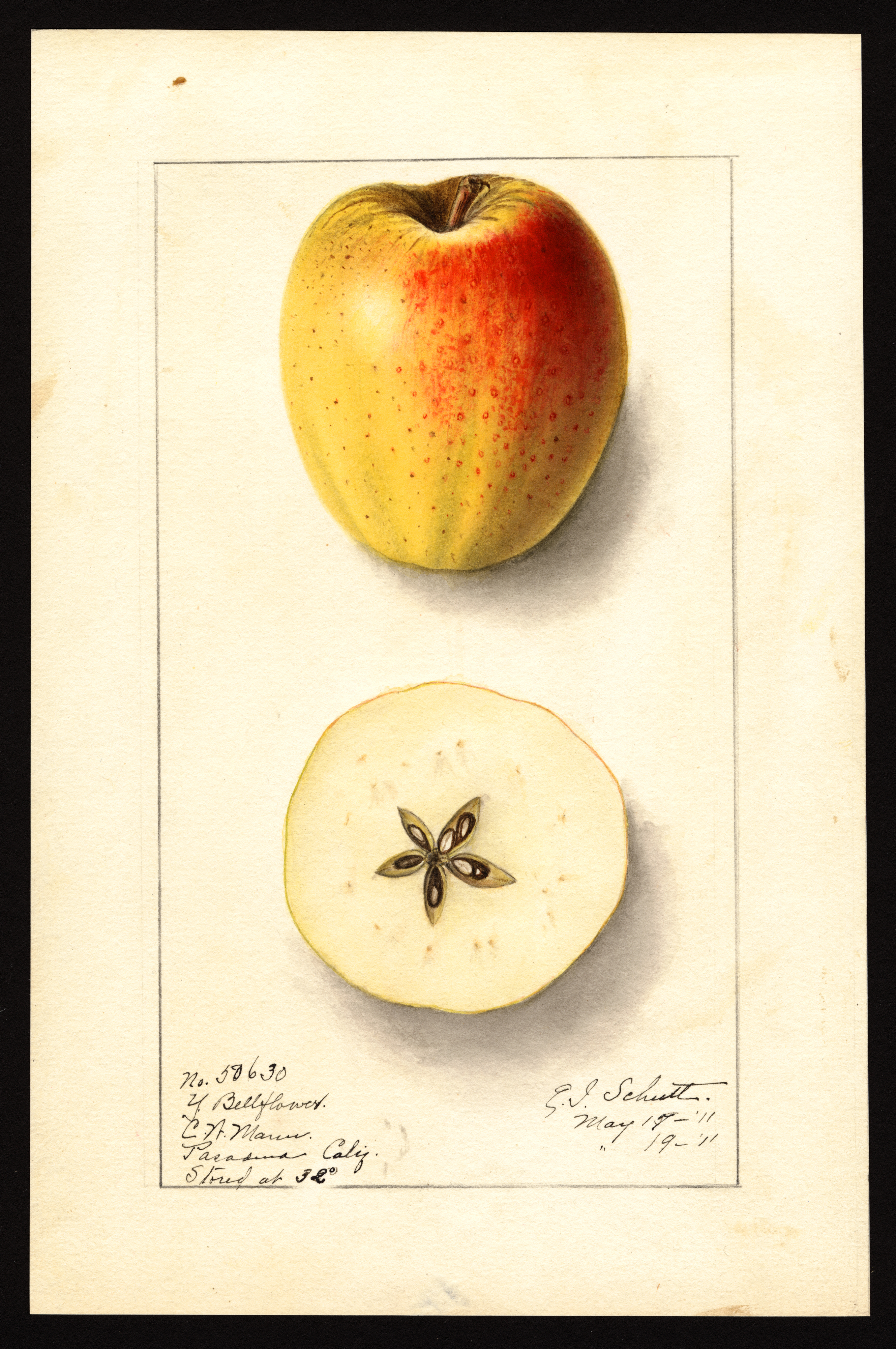 current21:16, 31 January 2026Thumbnail for version as of 21:16, 31 January 20262,658 × 4,000 (7.88 MB)Bot (talk | contribs)== Summary == USDA Pomological Watercolor of Yellow Bellflower apple. * '''Artist:''' Schutt, Ellen Isham 1873-1955 creator artist USDA * '''Source:''' U.S. Department of Agriculture Pomological Watercolor Collection. Rare and Special Collections, National Agricultural Library, Beltsville, MD 20705 * '''Identifier:''' POM00000525 * '''License:''' Public Domain Category:USDA Pomological Watercolors Category:Apple variety images
