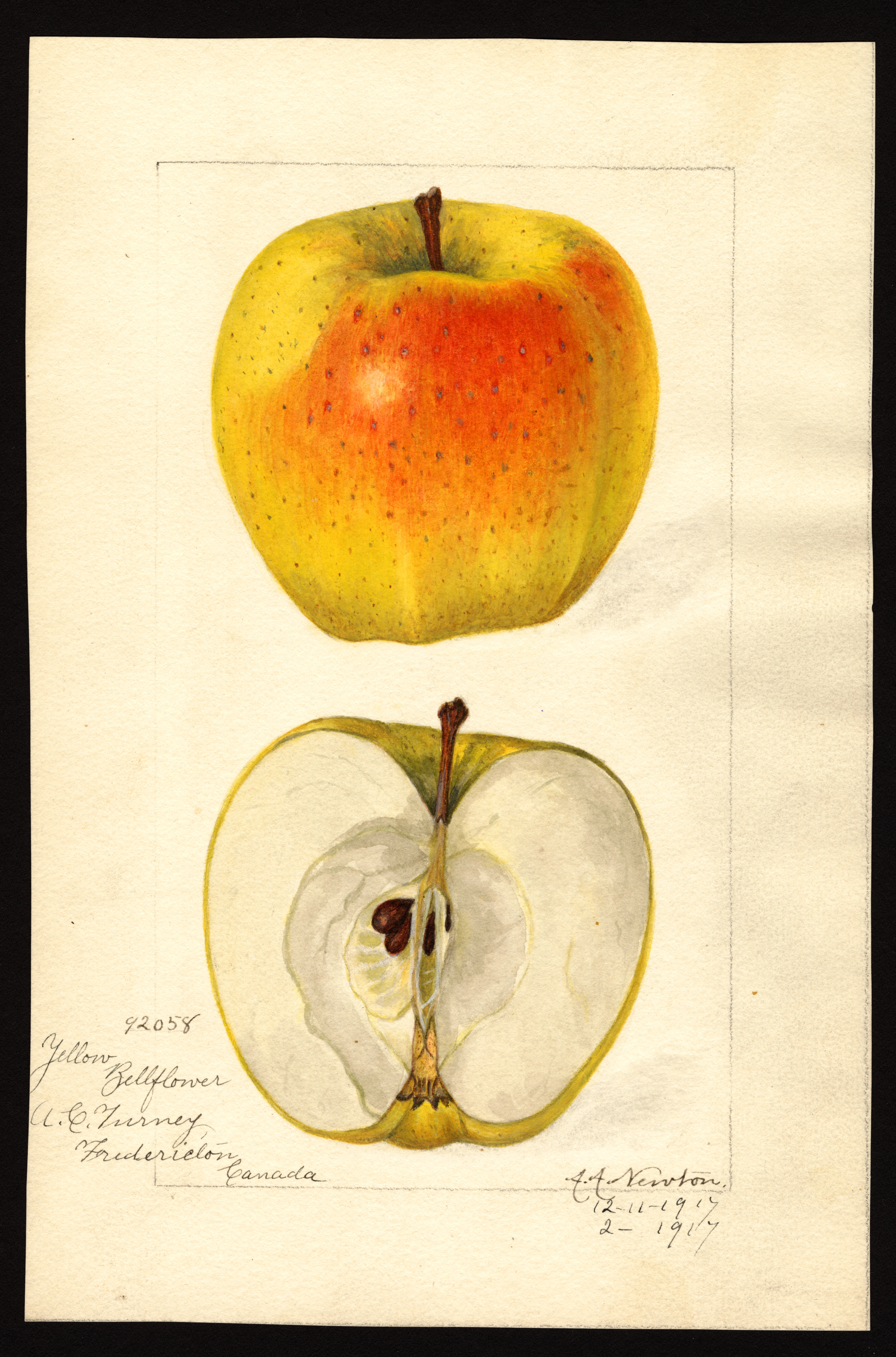 USDA Pomological Watercolor of Yellow Bellflower apple.