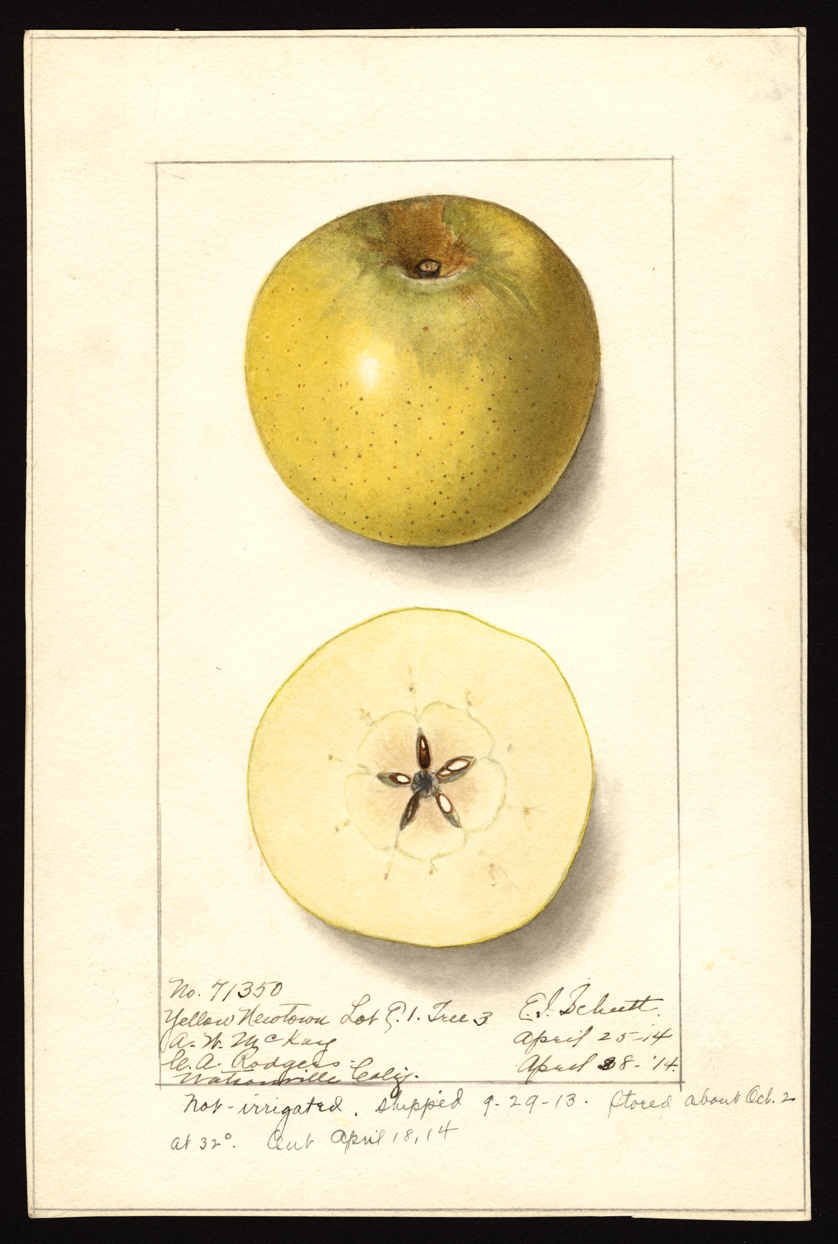 USDA Pomological Watercolor of Yellow Newtown/Newtown Pippin apple.