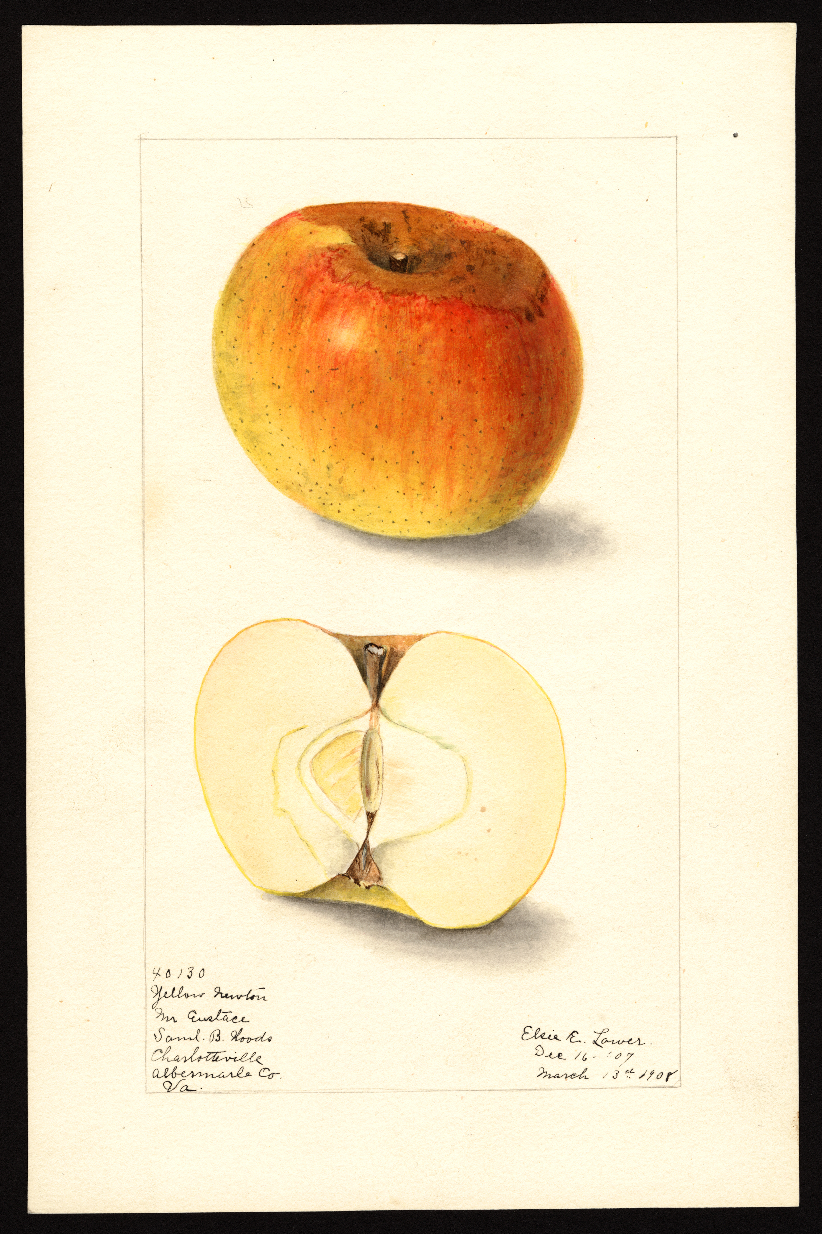 USDA Pomological Watercolor of Yellow Newtown/Newtown Pippin apple.