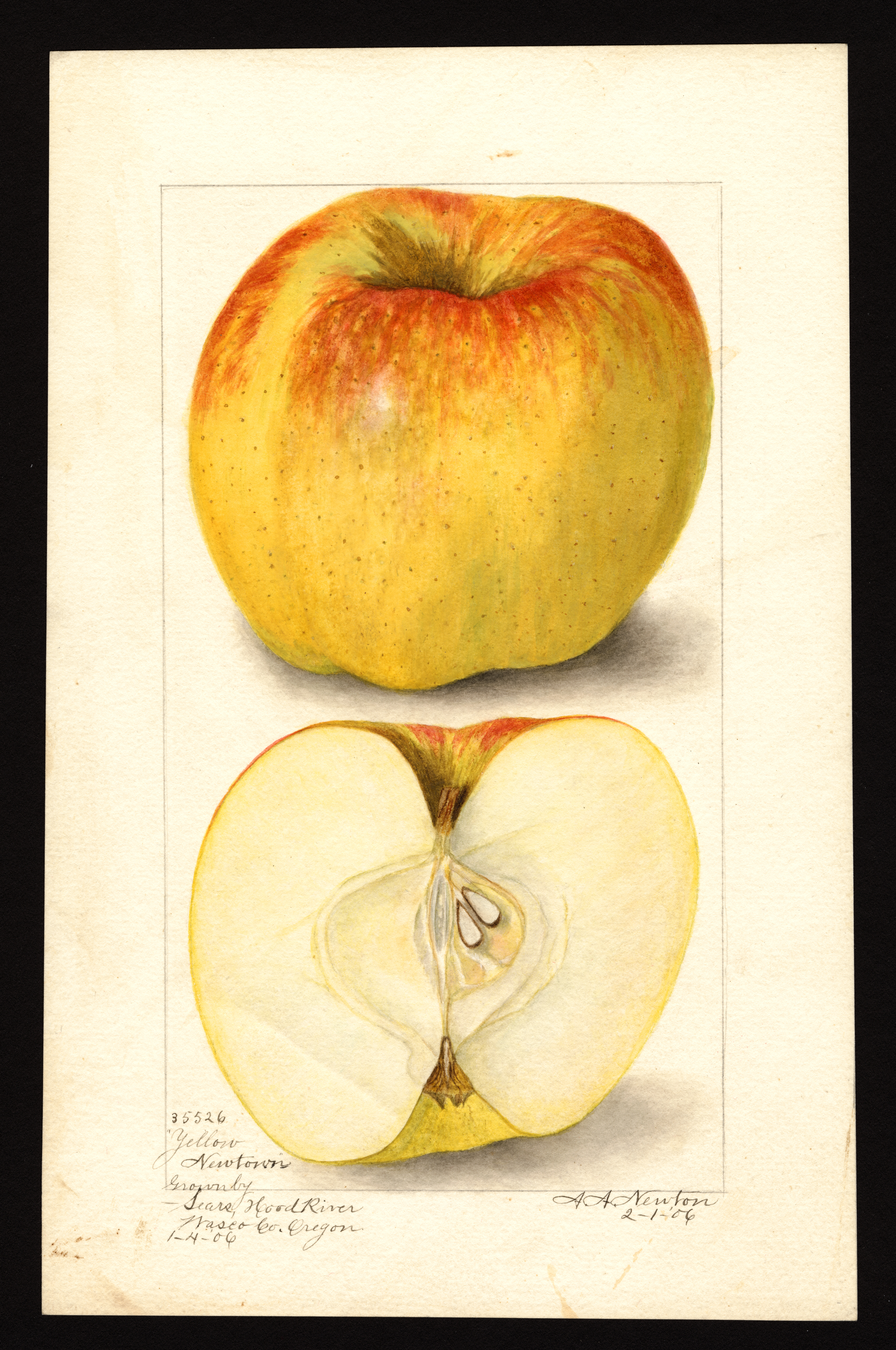 current21:37, 31 January 2026Thumbnail for version as of 21:37, 31 January 20262,656 × 4,000 (7.68 MB)Bot (talk | contribs)== Summary == USDA Pomological Watercolor of Yellow Newtown/Newtown Pippin apple. * '''Artist:''' Newton, Amanda Almira ca. 1860-1943 creator artist USDA * '''Source:''' U.S. Department of Agriculture Pomological Watercolor Collection. Rare and Special Collections, National Agricultural Library, Beltsville, MD 20705 * '''Identifier:''' POM00000888 * '''License:''' Public Domain Category:USDA Pomological Watercolors Category:Apple variety images