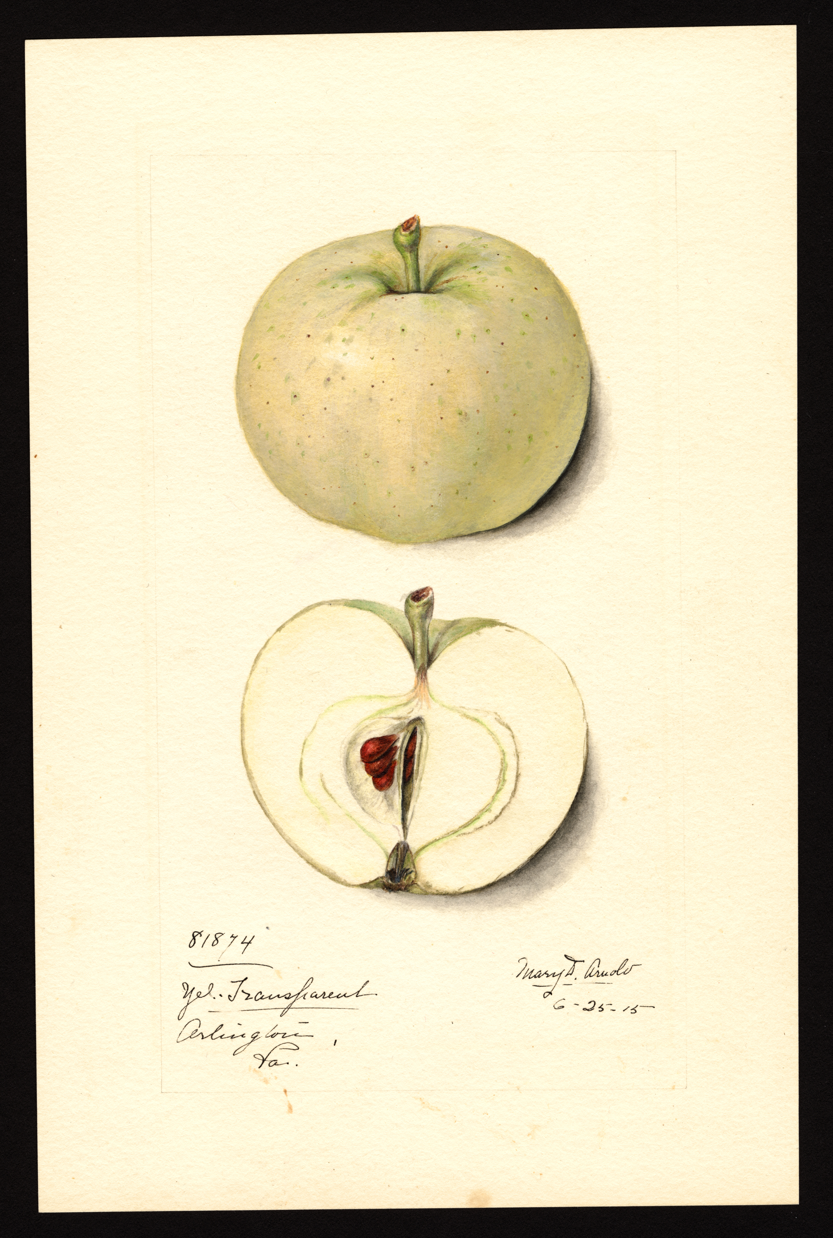 current20:50, 31 January 2026Thumbnail for version as of 20:50, 31 January 20262,691 × 4,000 (7.59 MB)Bot (talk | contribs)== Summary == USDA Pomological Watercolor of Yellow Transparent apple. * '''Artist:''' Arnold, Mary Daisy ca. 1873-1955 creator artist USDA * '''Source:''' U.S. Department of Agriculture Pomological Watercolor Collection. Rare and Special Collections, National Agricultural Library, Beltsville, MD 20705 * '''Identifier:''' POM00000997 * '''License:''' Public Domain Category:USDA Pomological Watercolors Category:Apple variety images