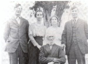 The McCoin family, early 1920s. Standing, left to right: Walter McCoin, Ella McCoin Mendenhall, Minnie McCoin Helfrich, Numa McCoin. Seated: Julius McCoin. Source: Find a Grave.