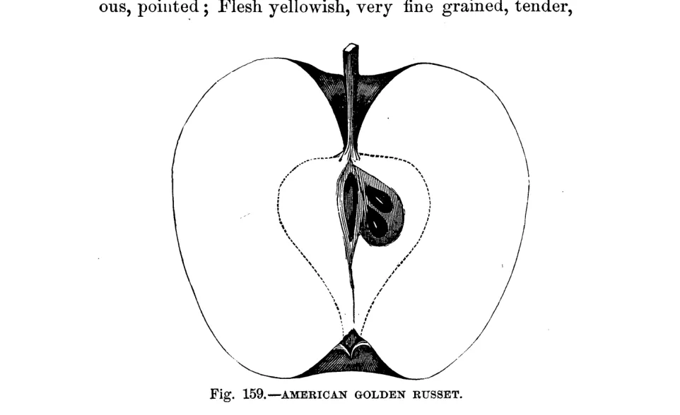 — A.J. Downing, The Fruits and Fruit Trees of America (1900)American Golden Russet. Golden Russet. Bullock's Pippin. Sheep Nose. Little Pearmain.