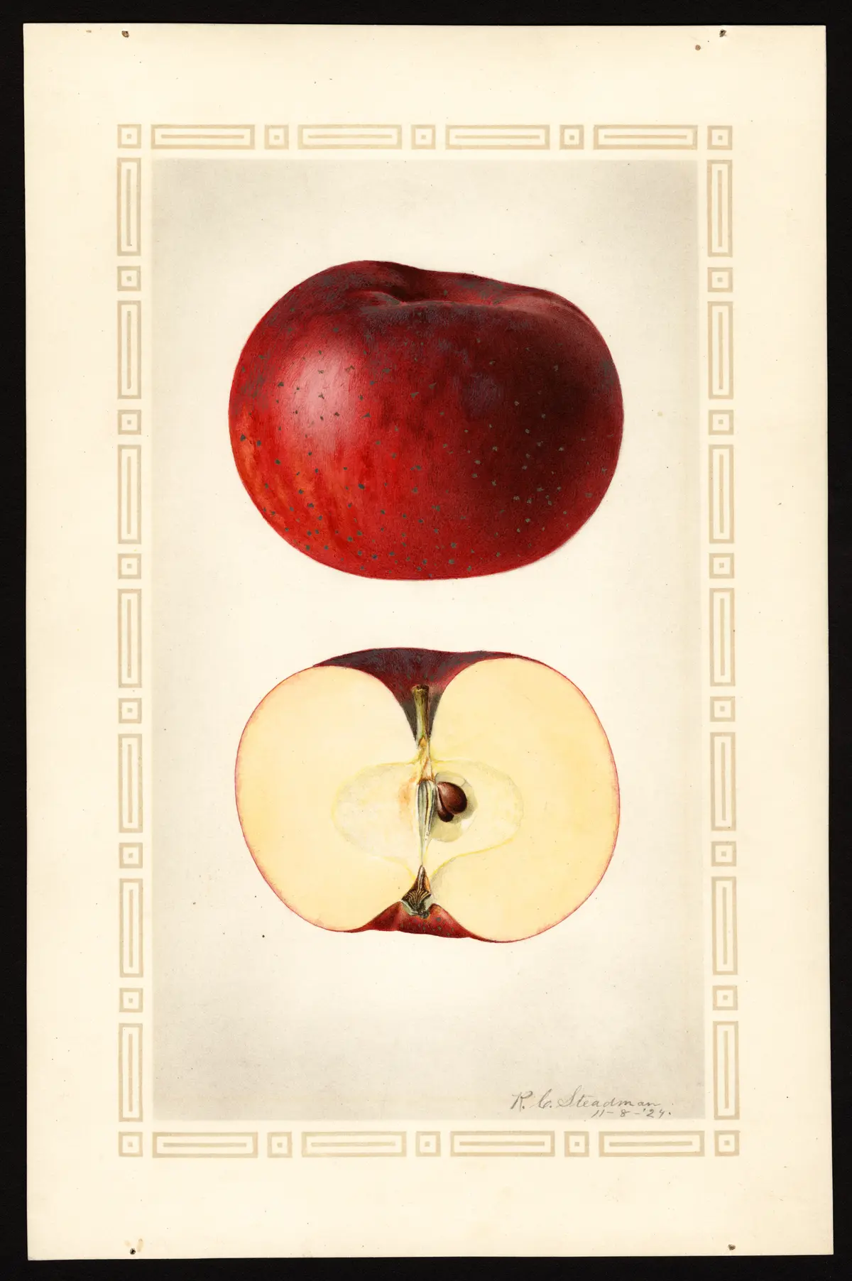 Form: Oblate to roundish, pretty symmetrical and uniform (Beach). Warder described it as regular and quite flat. Downing noted it as oblate with sides often unequal. Elliott: roundish flattened. Thomas: oblate, slightly oval.
