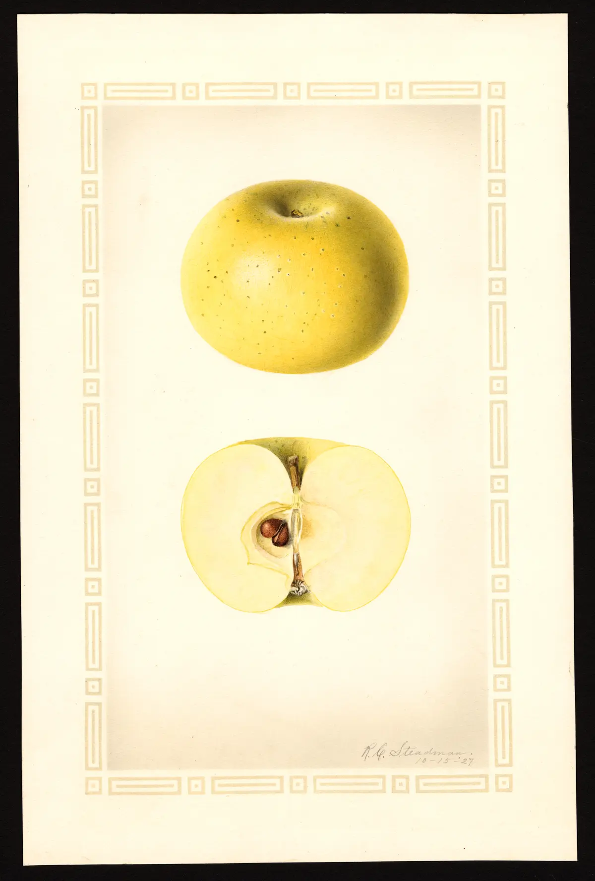 Skin: Rather thick and tough, separating readily from the flesh. Smooth. Greenish-yellow, often somewhat blushed.