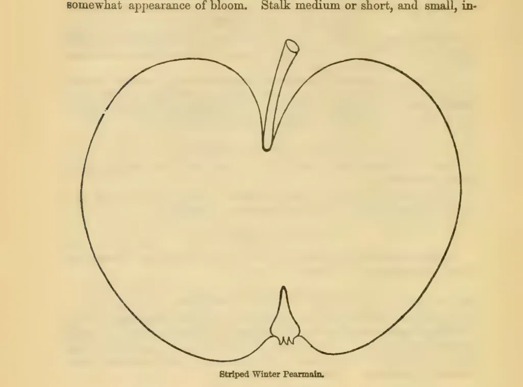 — A.J. Downing, The Fruits and Fruit Trees of America (1900)Striped Winter Pearmain.
