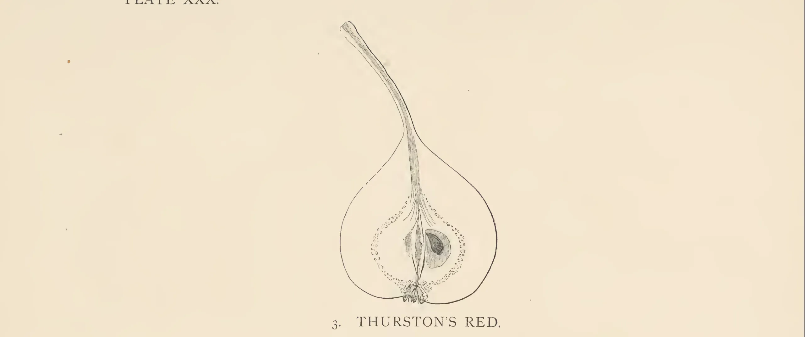 The old family of the Thurstons held the estate of the Whitehouse, in the parish of Dymock, for several generations. Mr. Wm. Thurston now lives there, and has several fine trees of Thurston Red Pear. He was told by his father that Mr. John Hiatt, formerly of Merrables Farm, Dymock, a great fruit grower in his day, had grafted the young stocks there from the Whitehouse trees. This Whitehouse has the credit of being the birthplace of John Kyrle, the Man of Ross. It is believed also to be the place in which the Pear that bears the family name of Thurston originated. Some eight or nine trees have died there from old age; so the variety is ancient though it has no history. It is now described and figured for the first time.